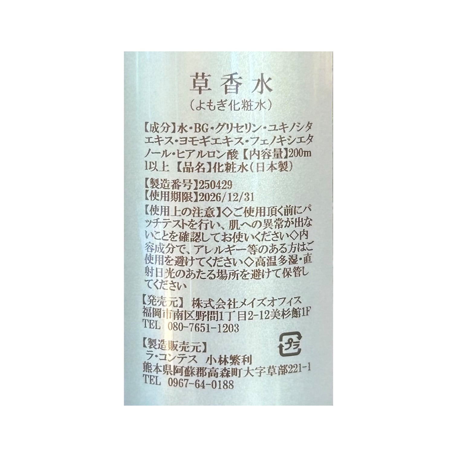 草香水(よもぎ化粧水)