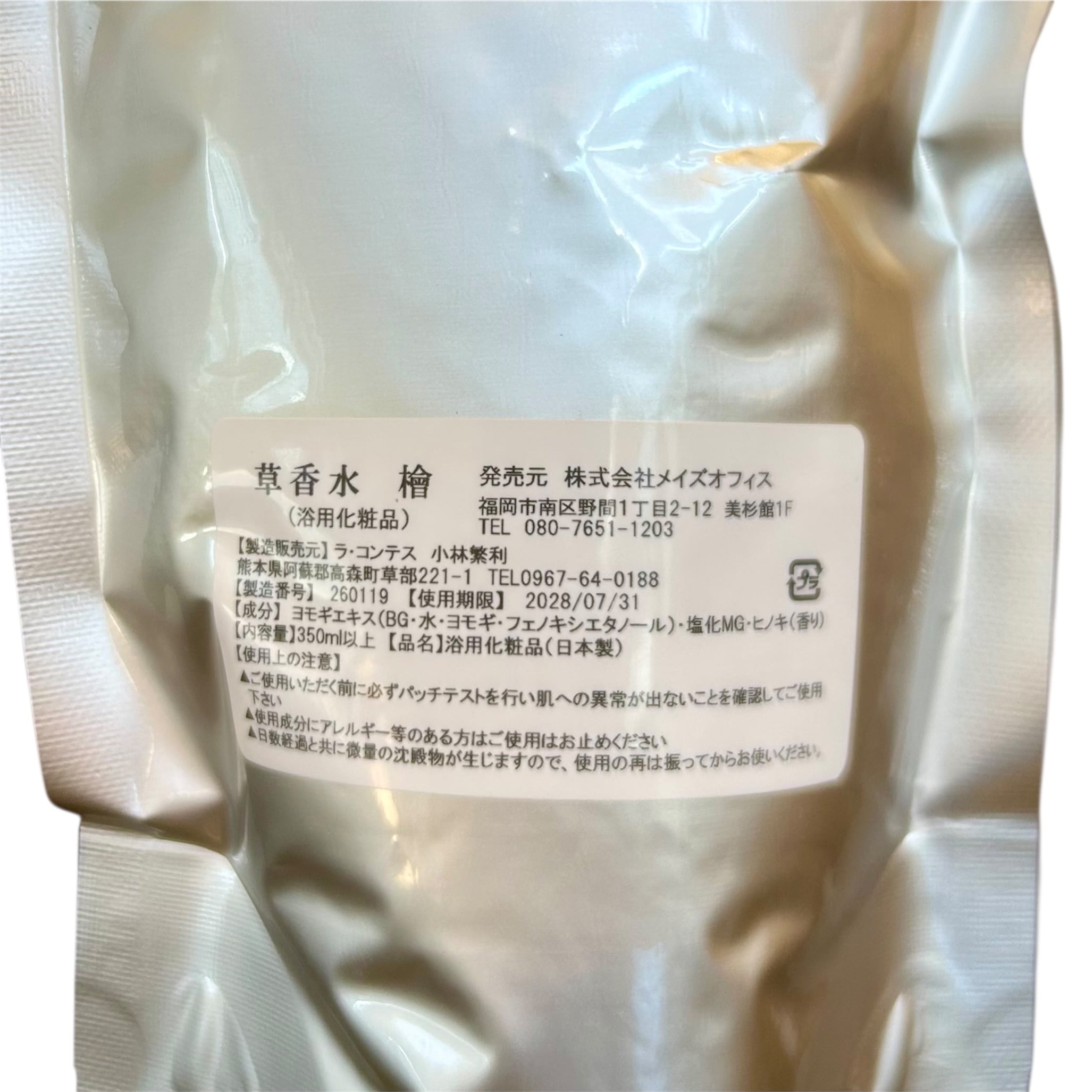 古来より親しまれてきた「よもぎ」を贅沢に取り入れたバスオイルに、凛とした檜の香りをプラスしました。